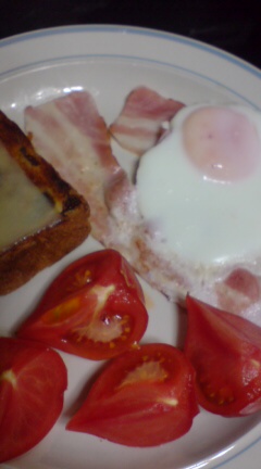 朝食の定番、ベーコンエッグ。…しかし「朝食を作る」が定番になってないので珍しいという罠w