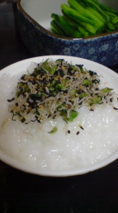 …ごはんを炊こうとしたら中途半端に冷たいご飯があまっていたので(またかよ)おかゆ。トッピングは野沢菜ちりめんの残りをかけて終了。そのほか、豚肉のしょうが焼きとか冷凍庫から出して解凍したほっけのみりん干とか冬菜のおひたしとか、少々和食風味で。しょうが焼き簡単で大好きだ~!しかし、しょうが焼き用のお肉を一パック使い切るのは多いので、二切れほど生のまま冷蔵庫に。そしてまたあまり食材が増える罠。