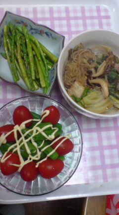 ご飯は旦那が炊いておいてくれたので、さっさと作ってさっさと食事。