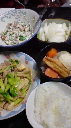 本日は昨日の残りのおでんがメイン。2日目が本命だよね!そんな一汁三菜をご紹介~。