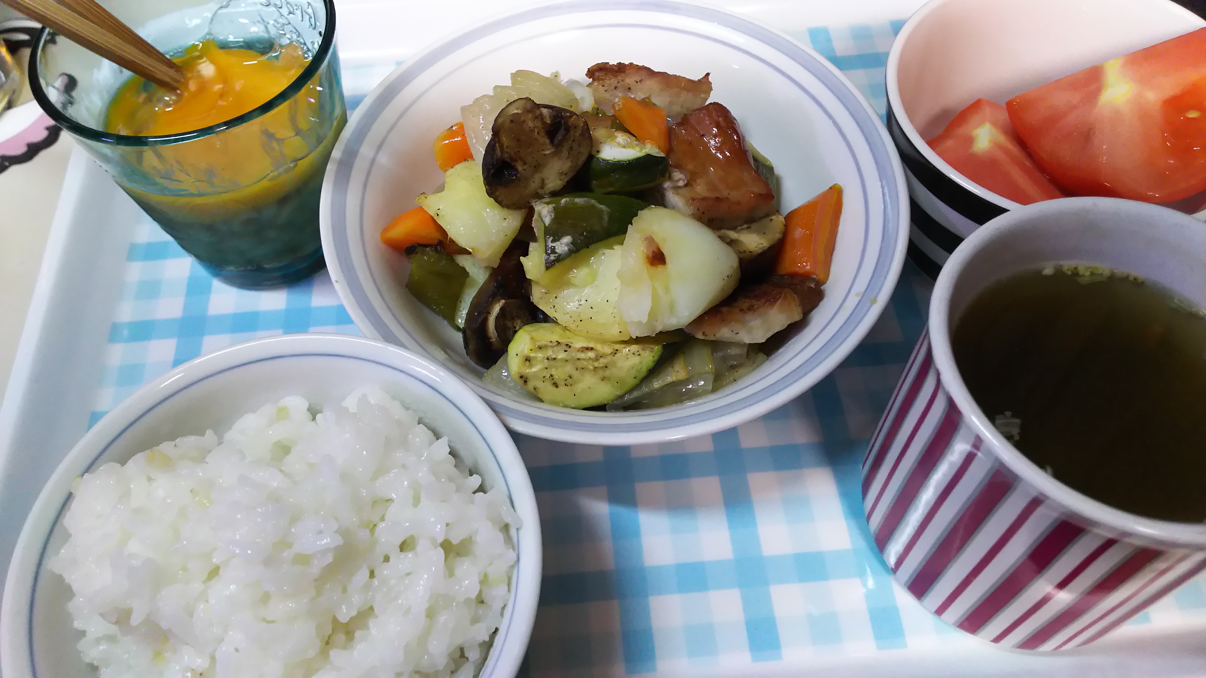 →野菜とか肉とか適当に切る→天板に放り込んでオリーブオイルと塩コショウ