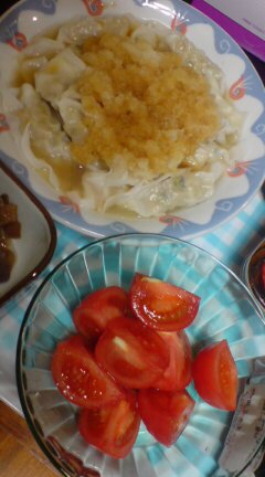 冷凍庫から水餃子~。4分ほどゆでて、大根おろしと