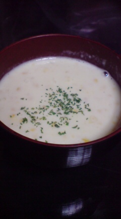 そんなわけで、クリームコーンの缶詰を買ってきて、牛乳で伸ばして軽く塩コショウ。コーンスープのできあがり♪・・・というわけでとりあえず2本消費w