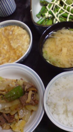 本日も、ありもの調理~。久しぶりに普通のみそ汁を作ってみた。そんな一汁三菜~。