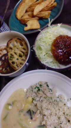 菜1:ジンギスカン。お肉は生協さんの冷凍物。3パックのうち1パックをぬるま湯で急いで解凍。冷蔵庫に堕してから出勤する時間と心の余裕がないものか。あとは冷蔵庫から、しめじ、ピーマン、玉ねぎ、キャベツを出して刻んで炒めて出来上がり。