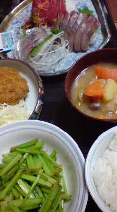 昨日のポトフが残ってるはずだし、炊きたてご飯なのでお刺身が合いそうだぜ!というわけで買いもの。本日の一汁三菜~。