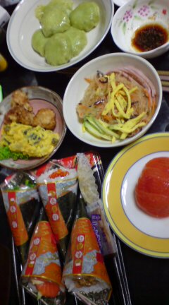 菜2:「はいレタス食べる分だけちぎって~」「はいきゅうりこれでスライスして~」「はいレタスの上に豆腐置いたらからスプーンで適当に崩して~」「次きゅうり散らして~」「ミニトマトカットしておいたから散らして~」「ドレッシングこれとこれとこれの中から好きなのかけて~」はいできあがり!
