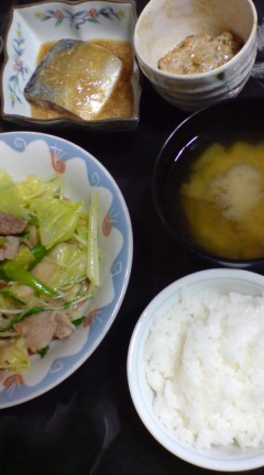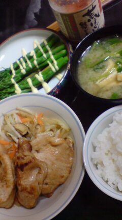 菜1:豚肉の生姜焼き。なんか久々に食べたくなった。冷蔵庫の生姜を消費終了。付け合わせに野菜を炒めてみた。にんじん、しいたけ、玉ねぎ、もやし…もっと何か色味のつくものを入れればよかった…あ、玉ねぎと椎茸が消費終了。