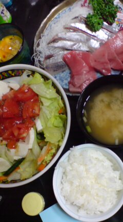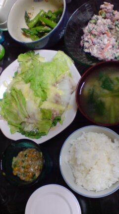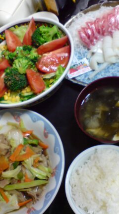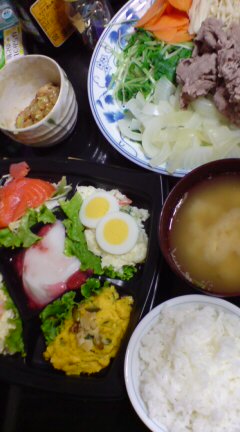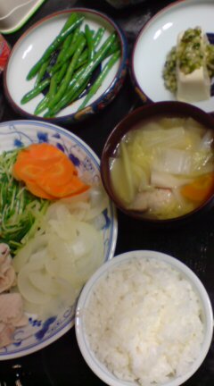 菜1:昨日使わなかった豚肉を使ってしゃぶしゃぶ再び。新玉ねぎの消費拡大中w