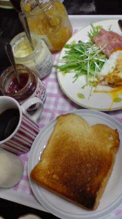 菜2:サラダ。レタスとトマトとコンビーフ…きゅうりが1本残っていたっと思ったら、冷蔵庫の中で怪しくなってた。そんなわけで、きゅうりがないため、相対的にコンビーフが多すぎるバランスに。今度は半分取り分けて使おう。そんで翌日にチーズといっしょにトーストに乗っければいいさ!(←覚書)