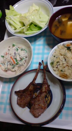 さて、今日解答し忘れた骨付きマトンは既に冷蔵庫で解答を始めたぜ!明日は菜の花の炊きこみご飯とマトンのあぶり肉、そして病みつき塩キャベツのたれを見たら食べたくなったのでキャベツ買ってきた。あと1品…サラダはキャベツとかぶるので白和えかごま和えでもするかな…。
