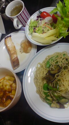 夕方、出先から買い物をして帰ってきたところ、旦那のリクエストが「やきそば」…麺がないよ!と言ったら「スパでもいい」とのご要望。…そんなわけで連日スパゲティな我が家ですw