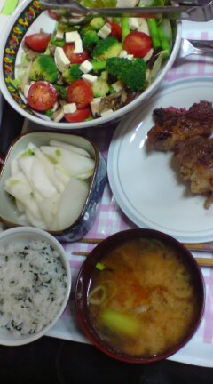 本日はなぜか二汁三菜の豪華食卓。…というか、明日は職場に泊まり込みで仕事してこようと思ってるので(ちょっと少々本日ブチ切れてマジ)、シチューを作り置きしたのでした。