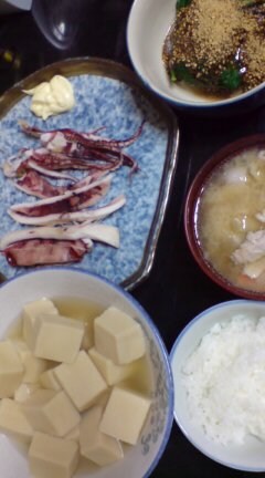 菜1:いかの一夜干from冷凍庫。解凍をレンジで、焼きをグリルで。しーかーしーどのくらい焼いたらよいのかわからない~。…凍ったまま焼いても良かったんでしょうかね?…そして「