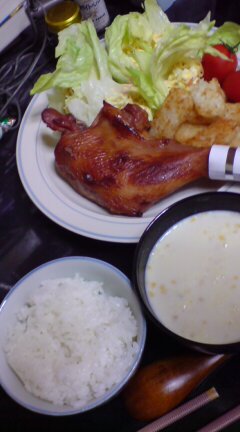 さて、あしたは現在解凍中のチキンと、牛乳があまり気味なのでコーンスープが確定…あ、コーンスープに刻み玉ねぎとひき肉を入れれば中途半端に余ったひき肉の問題は解決?あとはスナップエンドウとミニトマトがあるし、・・・きのこがあるので焼いてドレッシングかけて焼ききのこと温野菜のサラダ風、とかどうだ。・・・もう1品どうすっかなあ。