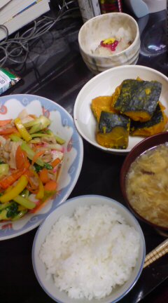 …肉団子がけっこう存在感あった&豆腐もチーズも納豆も蛋白質じゃん!というわけで肉を使わなかったので後2パックあるなり。…明日も買い物いらんなあ。セロリの葉っぱと豚肉とパプリカで炒め物(味付けはオイスターソース)あっとここに余ってるかまぼこ入れちゃえ。納豆がもう1パックあるし、春菊があるからゆがいて白和え?そういえば頂き物のふかひれスープが卵だけで出来上がりのはず、明日は中華よりで…