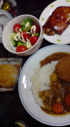 旦那がご飯を炊いておいてくれて助かります。ありがとうvそういえば日曜からひっぱったカレーもついでに完食なり。
