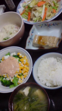 本日はちょっと早めに退勤したので、料理にも余裕あり。えへん。そんな本日の一汁三菜おまけつき~。