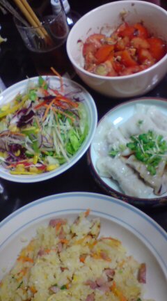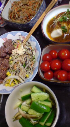 そんな状態なのに「夕食はうどんと天ぷらかおにぎりと焼肉」とか言い出したので、それっぽい夕食を用意してみた。おにぎりコースをチョイスだ!なぜなら個人的にお肉が食べたいと宣言したばかりだ・か・ら(はあと)w