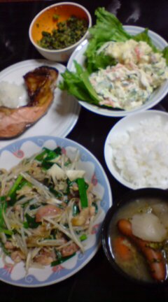 そのほか、生協からなんかいろいろ届いたので、今日はあえて買い物しないで夕餉~。いつものように手前から~。