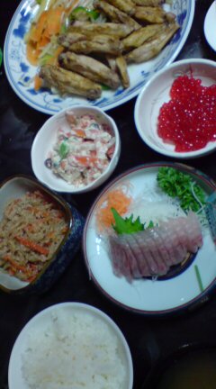 献立その7、右奥。白ご飯だったので明太子。在庫終了。わ~い。