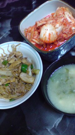 献立その6、昼間余ったキムチ。食べたけどやはり少し余る。