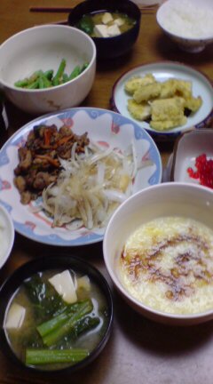 あとはお味噌汁。昨日のなばなとミニ豆腐で具沢山風味。