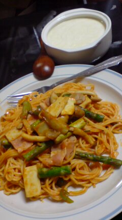 なんか間が空いてしまった。今日はきのこ増量ナポリタン~。しかししいたけをケチャップ味に使う勇気はなかった…。