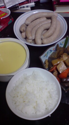 22時帰宅だと料理する気が起きない…。お惣菜とかコロッケとか超適当。サラダも買ってきたけど野菜不足じゃないのか。 とりあえず、冷蔵庫に週末買って放置していた生ウィンナーをボイル。そして野菜スープに牛乳加えて温める。本日使ったのはこんだけ~。ふうううう…。