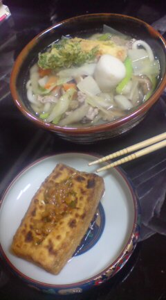 「けんちん汁用野菜の水煮」があったので、お手軽に具沢山うどんにしてみました。キープしてあった豚肉と長ネギ、しいたけを入れて更に具沢山に!えへん!…でも今考えたら卵も入れればよかったかも。