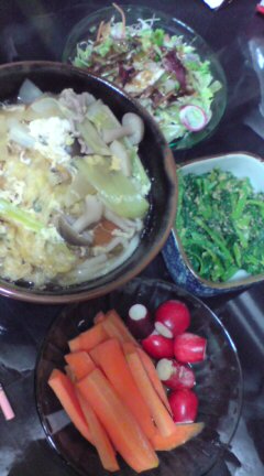 そして生野菜のサラダ。…うん、サラダセットの野菜パック買ってきた。冷蔵庫の「玉ねぎたっぷりドレッシング」が本日終了…生協のだけどおいしかったのでまた買おう。野菜は半パック残っております。