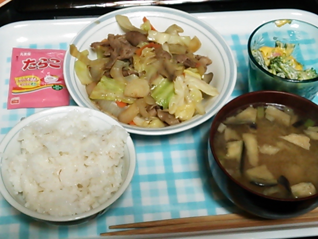 菜1:豚肉kのしょうが焼き。しょうが焼き用の肉を買ってきたまま忘れてた…。付け合せはなばなのおひたし。なんか青みが欲しかったんじゃよ…。