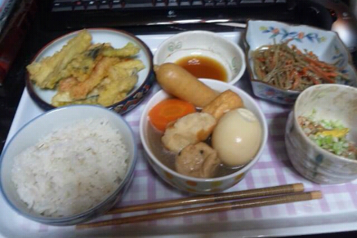 菜1:煮物。さすがに今日でおしまい。明日は何か作らねば。