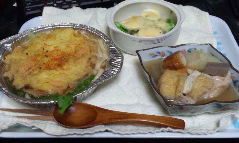 明日の課題は焼き豆腐をどう処理するかです。なんかいい料理ないかなー。クックパッドのぞきに行こうっと(なんだかんだいって食べるの大好き)。