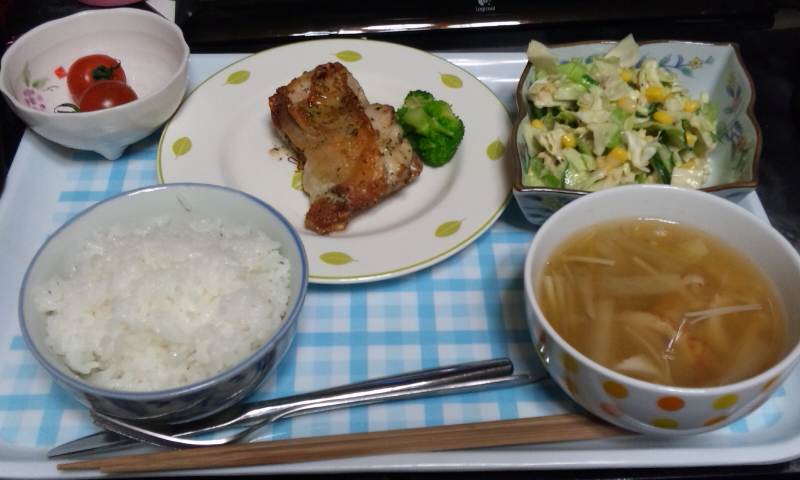 今日はちょっと頑張るデーになることが予想できたので、昨日は鶏肉を買ってきた。…そして今日、案の定買い物の余裕が無いとか…orz そんな一汁三菜。