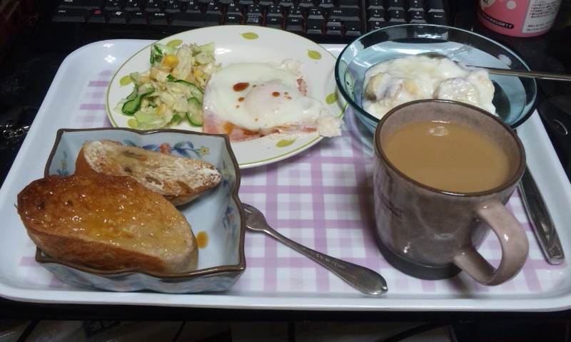 菜2:ツナとコーンのサラダ。ツナ缶コーン缶のほかは、キャベツ、きゅうり、セロリが入ってます。味付けはホエイとレモン汁、マヨネーズに塩コショウ。酢は刺激強すぎる気がしたのでレモン汁を入れたんだけど。そこそこ爽やかな味になってよかった。…だが分量は超適当なので一期一会のサラダとなったのであった…。キャベツがかぶっていたので、多めに作って(1/3くらいキャベツを刻んだ)タッパに入れて冷蔵庫にイン。