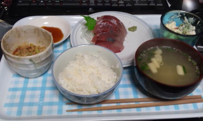 一汁:例によって具沢山味噌汁。大根、ごぼう、ちくわ、えのきが具。…いまひとつインパクトに欠ける感じ。何が悪かったんだろうか…。ネギが入ってないから?