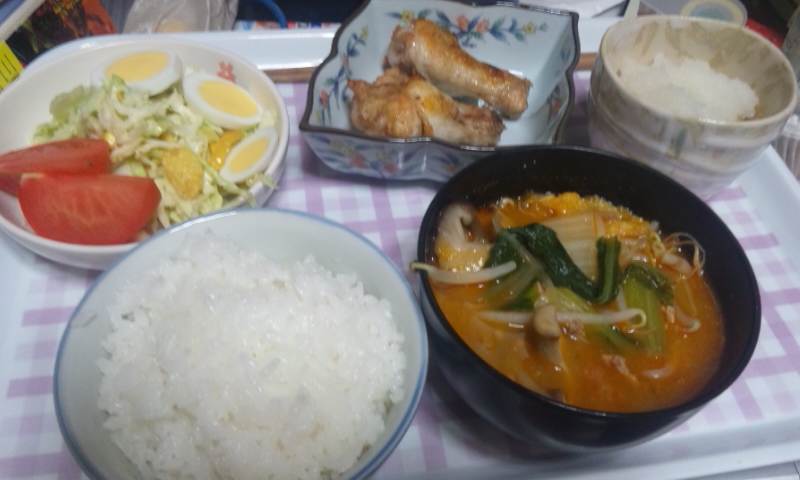 今日も20時までお仕事。帰ったら、旦那がお赤飯を買ってきてくれていた。…納豆が使えないわ…とか思いながら冷蔵庫を見ると、…ああ、そのまま食べられるのがそこそこあるよ…そんな一汁三菜。