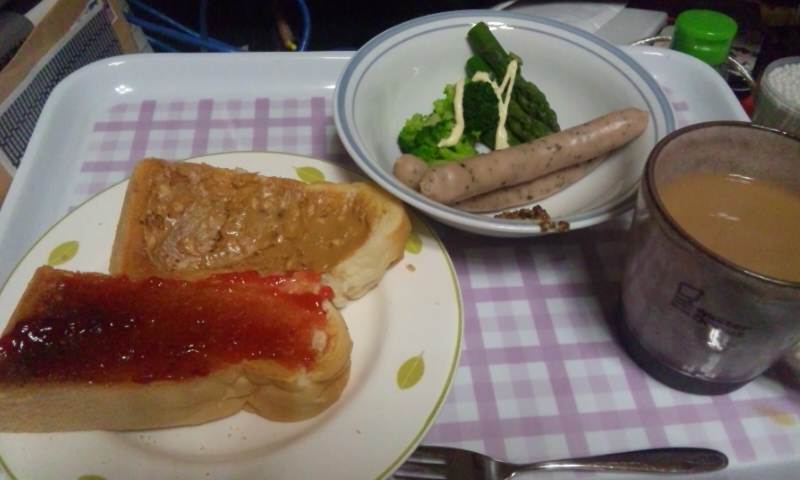 菜1:1束98円の菜花を見つけたのでゲット。それをゆでて…えーと…と見回すとそろそろ使い切れそうなピーナッツバターがあるじゃん!そんなわけでピーナッツバターとお醤油と和えて1品。めでたくピーナッツバターが空になる。もう1食分くらい取り分けておくと明日の朝幸せになれる。