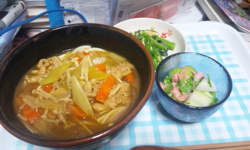 菜3:冷蔵庫で生シイタケがうなっていたので、時雨煮にしてみた。酢がリンゴ酢しかなかったので、そこは20年ものの梅干しを刻んで代用wそれだけだと塩気が強すぎる気がしたので、お豆腐に乗せてチンして温奴に。残りはお弁当の箸休めにしちゃえ。豆腐とあわせて約100キロカロリー。