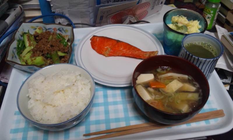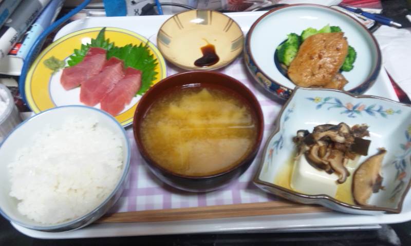 旦那のリクエストで生姜焼きが食べたいというのでスーパーへ。しかしお刺身コーナーで「ぶり 天然」の文字を見て魅了されカートに放り込む。…どんだけ天然ぶりっ子が好きなの私…っ!(ちょっとそれ意味違いませんか?)で、肉も魚もよくばり~な一汁三菜。ただし量はかなりセーブw