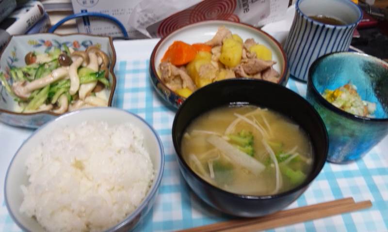 そんな中、少しでも在庫を整理しようと立ち上がった主婦!立ち上がったついでに厨房に入ってアレコレしてみた!(なんかノリがブログと一緒になって来ました。いやーん。)そんな一汁三菜。
