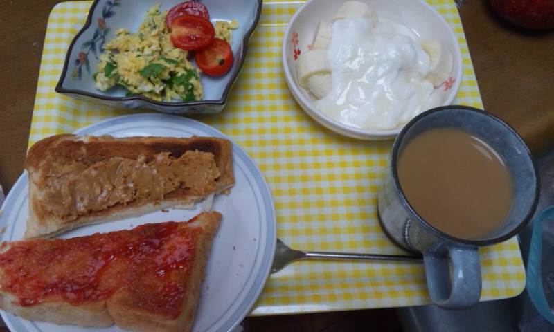 菜3:久しぶりに納豆を並べてみた。梅は他で使ったから、今日のトッピングは刻み長ネギ。2人で分けて、ひとり50キロカロリー。