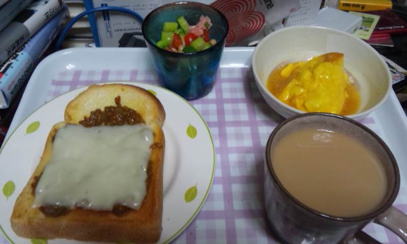 菜1:豚肉ともやしとえのきの卵炒め。…作るつもりはなかったんだけど、卵6個入りを買ってきたら台所で落として4個クラッシュ。すぐに器を用意してサルベージしたけど、2個半くらいしか助けられなかったんだ…。そして殻がないと卵は傷みやすいので夕食に使うことにしたんだ…。ちなみに、残り2個もベタベタしてたので水洗いしたから今残っている前の卵よりも早めに使わないとですよね…。